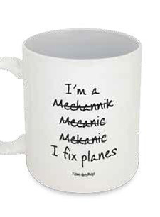 13. We are pore spelers. This mug that Richardson gave me says it all. This was after I introduced her in a symposium program as, “a much-sought-after pubic speaker.”Spell check failed me and she said that it was the best lead-in she had ever had. For those who didn’t spot the error, I meant to say “public speaker.”