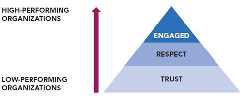 You can’t focus on engagement without other factors being in place. You also need mutual respect and trust. You also need a sound corporate structure with a singular focus, but one does not supplant the other. We are talking about the people part. You can’t have respect without trust and you aren’t going to get engagement without respect. Where are you on this pyramidal hierarchy? Most will have to work on the trust factor before proceeding — this is a behavior change.