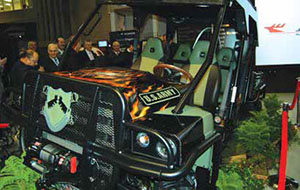 The vehicle incorporates his military insignia, badges, patches, and other symbols of his service – especially the Purple Heart he earned. The carbon fiber that is a major element in all of Nathan’s prosthetic legs has become a symbolic link to the vehicle as an equally prominent feature in its design. Along with the audience gathered to watch the presentation and to honor Nathan, he got his first look at the vehicle that will enable him, his wife, and their 2-year-old son to enjoy roaming the woods and so many other outdoor activities.