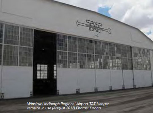 Flying above the railroad tracks which connected the dots between cities, Lindbergh chose Transcontinental Air Transport’s (TAT’s) destinations in eight states. CEO Clement Keys and his fellow board members held such confidence in the Lone Eagle’s chosen route that they poured funding into building “new ports” where there were none, and influenced municipalities to create or enlarge their own airports. It was a massive, expensive and well-planned first attempt to combine passenger airplanes and trains, with the promise of coast-to-coast travel in two days. TAT leveled open fields and hired architects to build new airports in Oklahoma (Waynoka); New Mexico (Clovis and Albuquerque); and Arizona (Winslow and Kingman). The early plans included Barstow and San Francisco, but the existing Glendale airport, known as Grand Central, in southern California was chosen for the maiden eastbound flight piloted by Lindbergh in July 1929. Columbus, Ohio; Indianapolis; Kansas City, Mo.; St. Louis; and Wichita, Kansas, each had a publically-funded landing field and/or airport which met the TAT standards for quality of runways, reporting weather, air and ground communication equipment and passenger terminals. TAT was ready for business after spending more than five million dollars in one year. Public excitement and enthusiasm was fueled by the participation of millionaires and movie stars and the airline’s consultant, Amelia Earhart. Before one ticket was actually sold, TAT was nicknamed the “Lindy Line.”