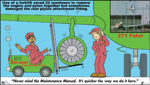 When the opportunity came to jump ship in order to develop Crew Resource Management (CRM) for maintenance (as a result of the 1989 Dryden accident in which 24 people lost their lives), I took it. I started with a clean slate and an Industry Advisory Committee that included the FAA and Canadian military. The Canadian military kept records of its maintenance error accidents and provided a box with thousands of errors on folded, holes-on-the-side paper piled more than a foot high. By reading each of those records over many months, I developed the 12 contributing factors that are now known as the “Dirty Dozen.” They are the basis of the human performance in maintenance workshop and my posters were developed to help maintain the awareness that the training provided.