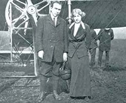Ovington flew independent of a team and Adelaide was by his side every moment on the ground. Adelaide packed and unpacked their suitcases, watched the crew work through the night in preparation for the morning’s show, and was there to kiss her husband good luck before each flight. Newspaper reporters, photographers and fans left the newlyweds with little privacy. On the road, Adelaide collected programs and newspaper clippings for a scrapbook. She befriended the vagabond mix of aviators and watched in horror as several of them were killed. Never once suggesting to her husband that he should quit such a dangerous occupation, Adelaide later wrote, “It isn’t a pleasure to know that your husband is flying a tricky exhibition monoplane when you fully realize what may be his fate any minute.”