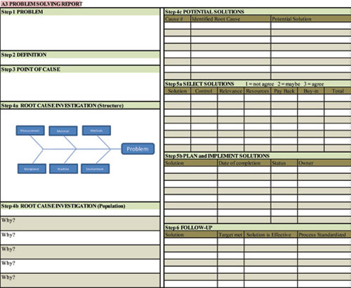 Some of you will recognize the analysis as a modified version of the A3 root cause analysis process, Figure 2, with a hint of failure mode and effects analysis (FMEA). The A3 is a standardized collection of common quality tools that was formalized by Toyota. I know, Toyota has taken some pretty hard hits lately, but their cars are still rated as the most reliable on the market. Their penchant for reliability is due to a number of processes and the A3 is just one of them.