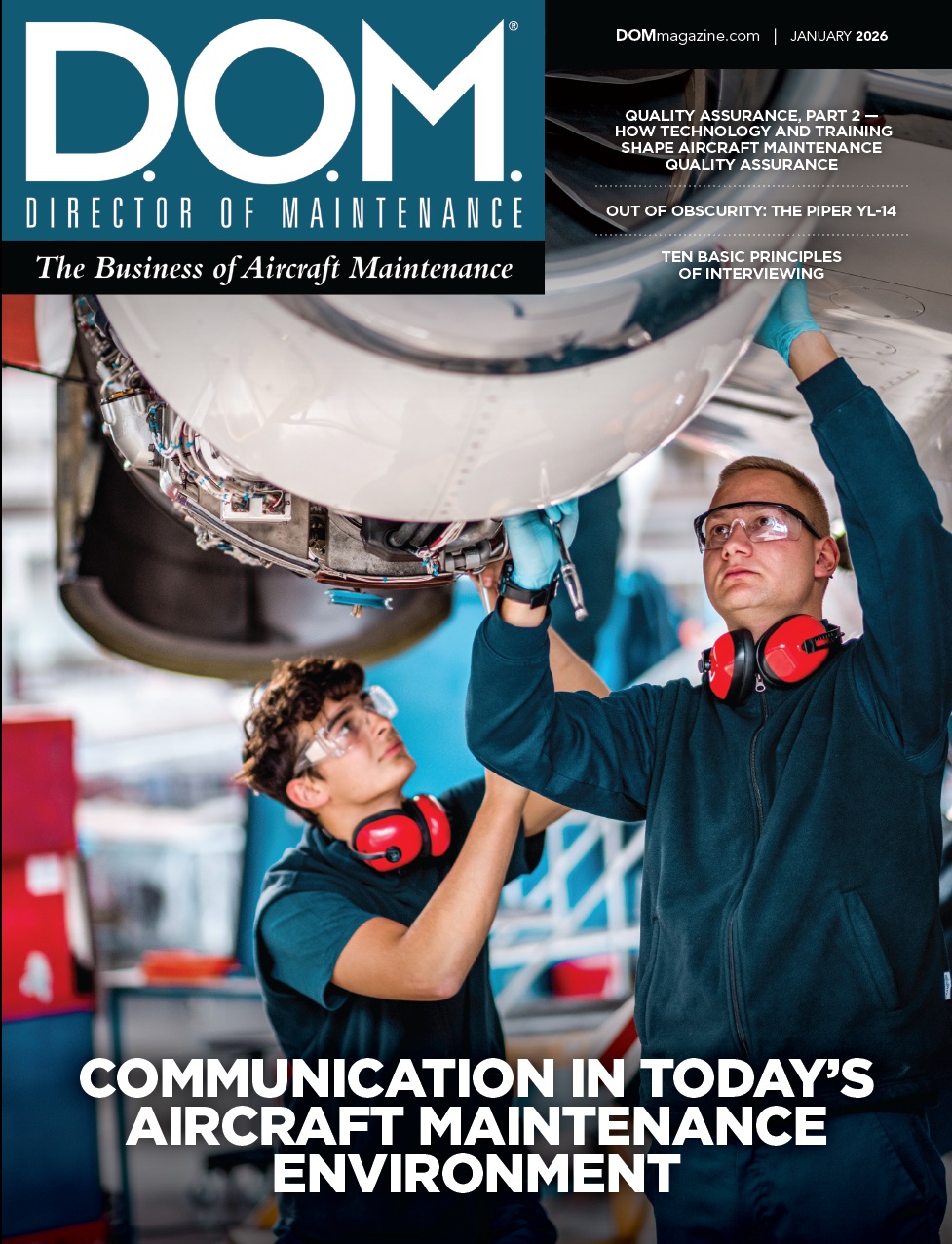 D.O.M. magazine is the premier magazine for aviation maintenance management professionals. Its management-focused editorial provides information maintenance managers need and want including business best practices, professional development, regulatory, quality management, legal issues and more. The digital version of D.O.M. magazine is available for free on all devices (iOS, Android, and Amazon Kindle).