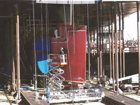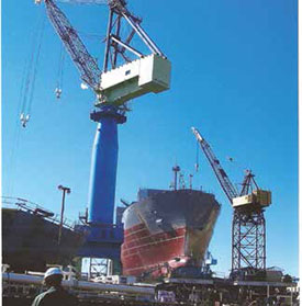 The first impression of a shipyard is staggering; the magnitude of construction is overwhelming and the entire process a modern marvel. Through NASSCO’s five-acre shipyard, pedestrians follow the green painted walkway posted with safety warnings to be alert for moving forklifts and trucks as well as pressure hoses, chains, cables and other underfoot cords that are attached to machines and men at work. Everyone is required to wear a hard hat, safety goggles and work boots. A NASSCO fire truck and paramedic van cruise the perimeter of the shipyard in case of an emergency on all three work shifts. The crews communicate among themselves using whistles and hand signals amid warning horns, sirens and flashing beacons of huge equipment. During my first visit, I noticed a blue flag at several different work stations. On my next visit they were red. My tour guide from General Dynamics’ public relations office explained that tool sets were color coded so they could be turned in for inspection while another set of differently colored tools was in use. The flags denoted which tools were in use.